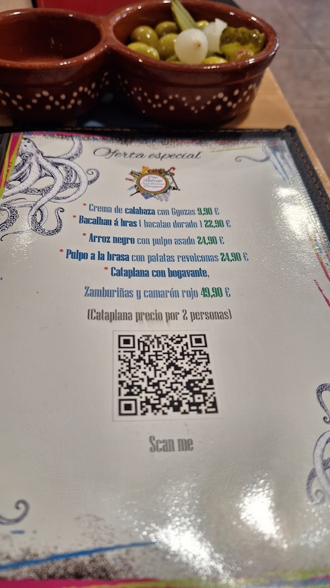 Menu highlights include options like Cataplana de Marisco, a flavorful seafood stew that warms the palate, or Pulpo à Lagareiro, where tender octopus is served with rich, rustic touches. For those who enjoy meat, dishes such as the Brocheta de Ternera y Langostinos add a balanced combination of surf and turf, while traditional desserts like Pastelitos de Belén offer a gentle, sweet finish to the meal.